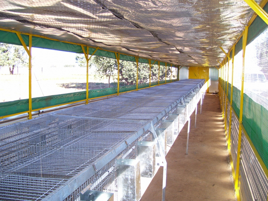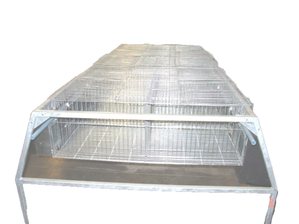 Rabbit cages are made from galvanized specialised panel as wire cages are easy to clean but these cages must be placed either in a building or under a roof structure, nesting boxes optional.